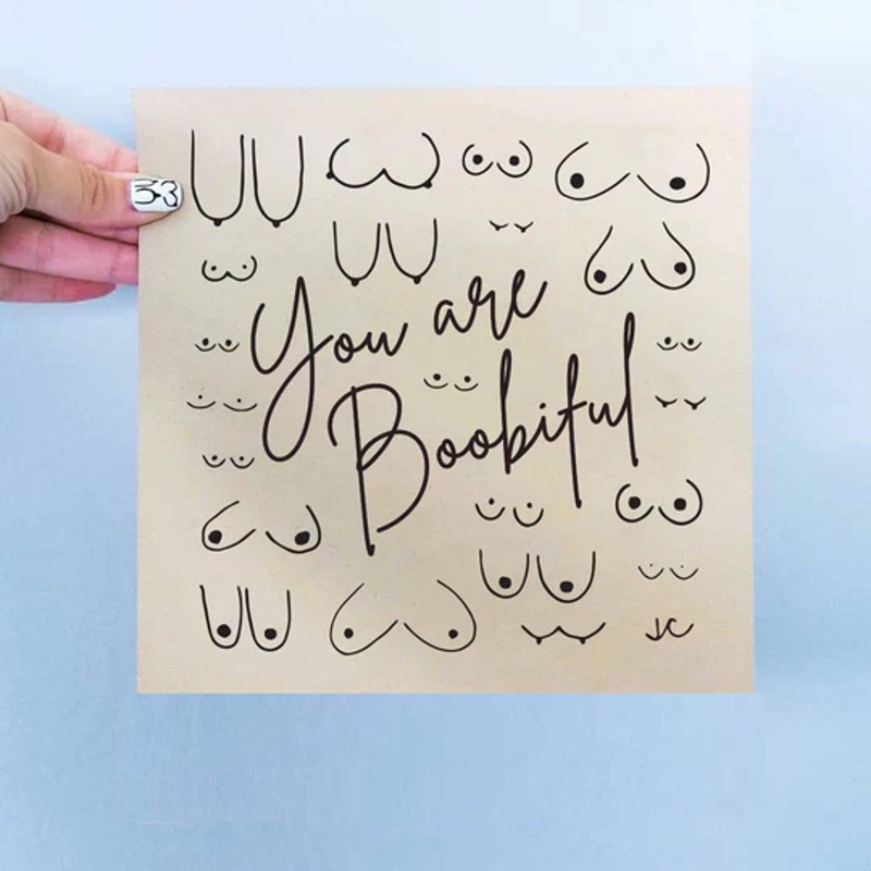 https://tittycitydesign.com/products/you-are-boobiful-feminist-print-boob-art-body-positive-bathroom-wall-art-breast-boobies-surgery-breastfeeding-gift-titty-8×8 โ The “You are Boobiful” print is meant to promote body positivity by featuring a variety of Titties in different shapes and sizes with a message that is sure to bring a smile.