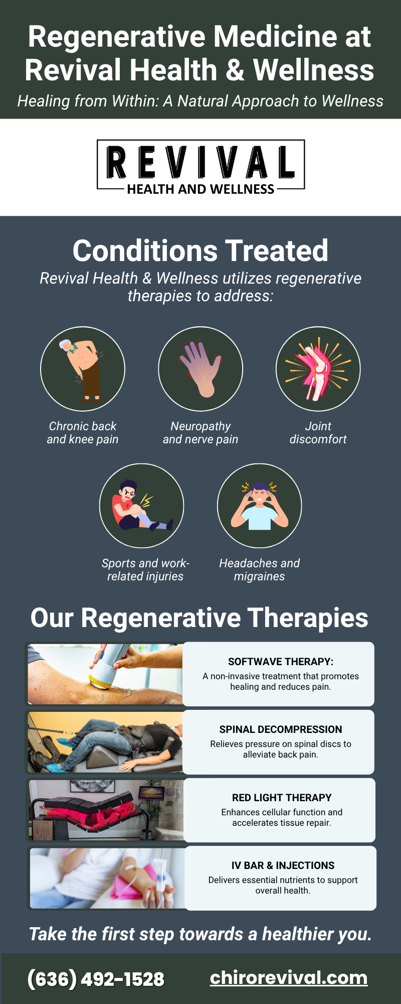 At Revival Health and Wellness, we specialize in chiropractic care to help you achieve natural pain relief, enhance mobility, and restore balance to your body. Our holistic treatments focus on providing drug-free healing for a variety of issues, including headaches, joint pain, and stress. Serving Fenton, MO, and Valley Park, MO, we offer personalized care aimed at long-term wellness. Schedule your free discovery visit by calling (636) 492-1528 or visitingchirorevival.comtoday!