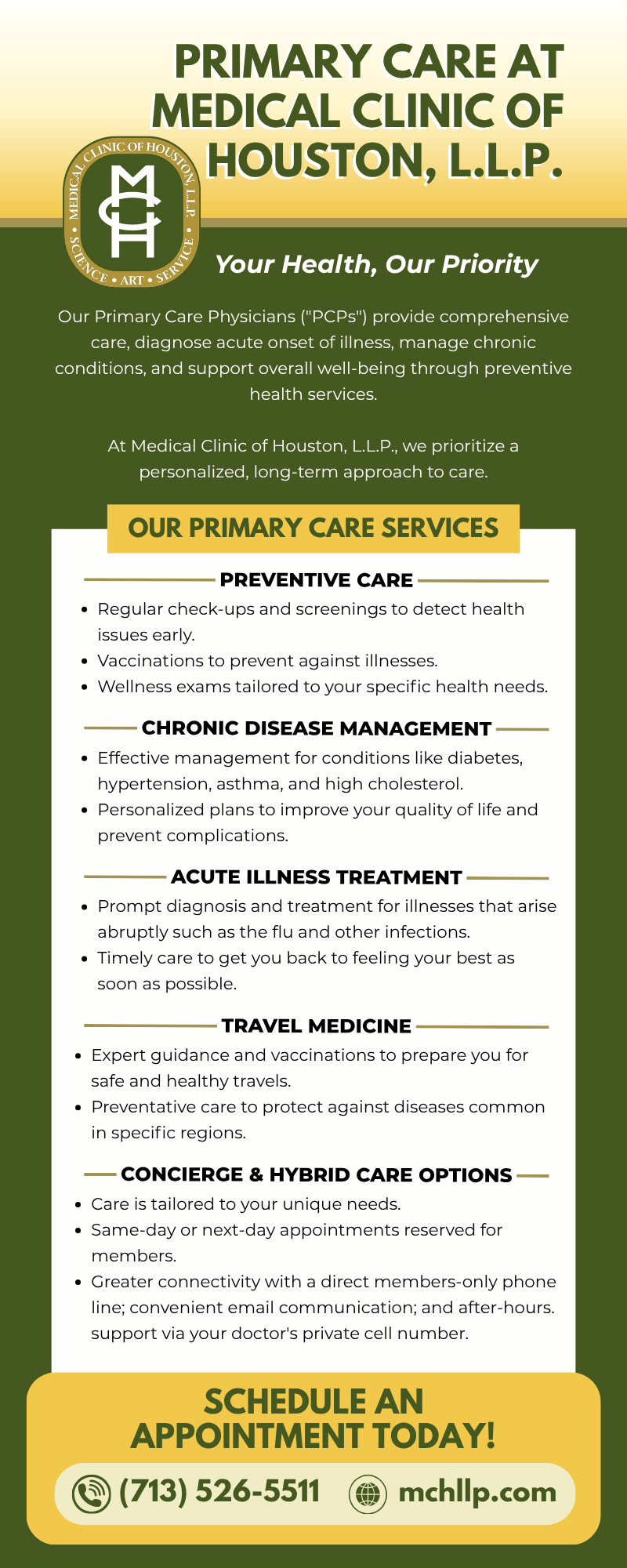 https://www.mchllp.com/ – Connect with a trusted Primary Care Physician in Houston, TX for preventive care, chronic condition management, wellness exams, and same-day appointments. Schedule your Primary Care appointment with an experienced Family Doctor near Houston dedicated to long-term health and personalized support.