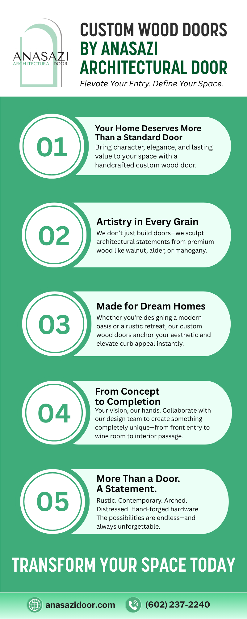 https://www.anasazidoor.com/our-doors/custom-exterior-doors/ – Anasazi Architectural Door creates premium, handcrafted wood doors designed to elevate the look and feel of your home. Every door is made with superior craftsmanship using premium woods like walnut, alder, or mahogany. Their doors are built for dream homes—whether you’re designing a modern, rustic, or luxury space. From concept to completion, the team collaborates closely with homeowners, builders, and designers to deliver custom pieces made to fit your vision. These doors are more than functional—they’re expressive architectural statements built to enhance your home’s identity.