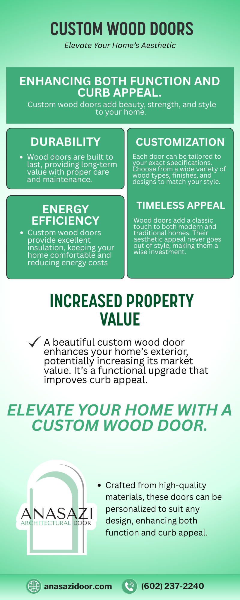 https://www.anasazidoor.com/our-doors/custom-exterior-doors/ – Custom wood doors combine durability, energy efficiency, and timeless design to enhance any home. Crafted from high-quality materials, they offer endless customization options to match your style. These doors improve insulation, boost curb appeal, and increase property value. A perfect blend of function and beauty, custom wood doors are a smart and lasting home upgrade.