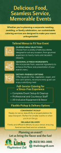 Make your next event unforgettable with our delicious food, seamless service, and fully customizable catering options. From corporate meetings and weddings to family celebrations, we offer tailored menus featuring fresh, seasonal ingredients and dietary-friendly choices for every guest. Enjoy full-service catering with professional staff, complete setup and cleanup, and all-inclusive equipment and décor. Prefer something simpler? Choose convenient pickup or reliable delivery for perfectly prepared dishes. Call: (623) 561-1681 or Visit: thelinksgrill.com.