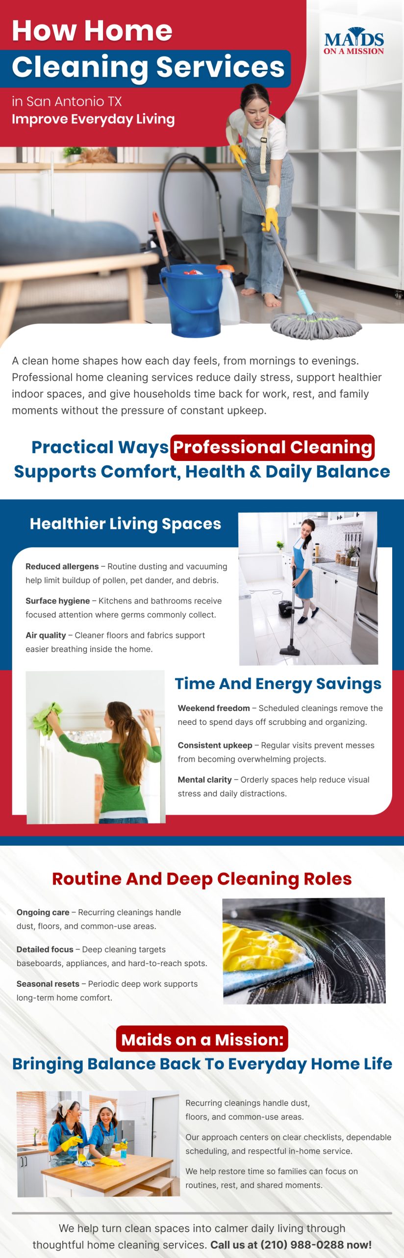 Are you looking for a trusted team to provide the best home cleaning services close to San Antonio, TX? Maids on a Mission provides top-notch home cleaning services you can count on. Whether you need a one-time deep house cleaning or weekly house cleaning, we have you covered. Our highly trained professionals will provide excellent service to ensure your satisfaction. Request a quote!
