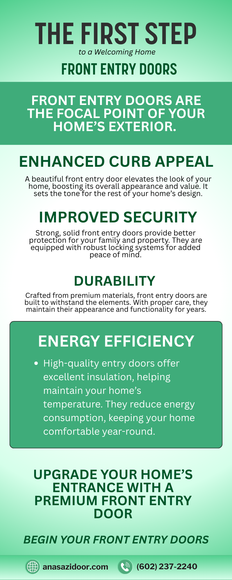 https://www.anasazidoor.com/our-doors/front-entry-doors/ – Front entry doors enhance curb appeal, security, and energy efficiency while creating a welcoming first impression. Built from durable materials, they offer long-lasting performance and protection. With customizable designs, finishes, and styles, homeowners can match their unique aesthetic. A high-quality front door is a smart investment that improves both functionality and overall property value.