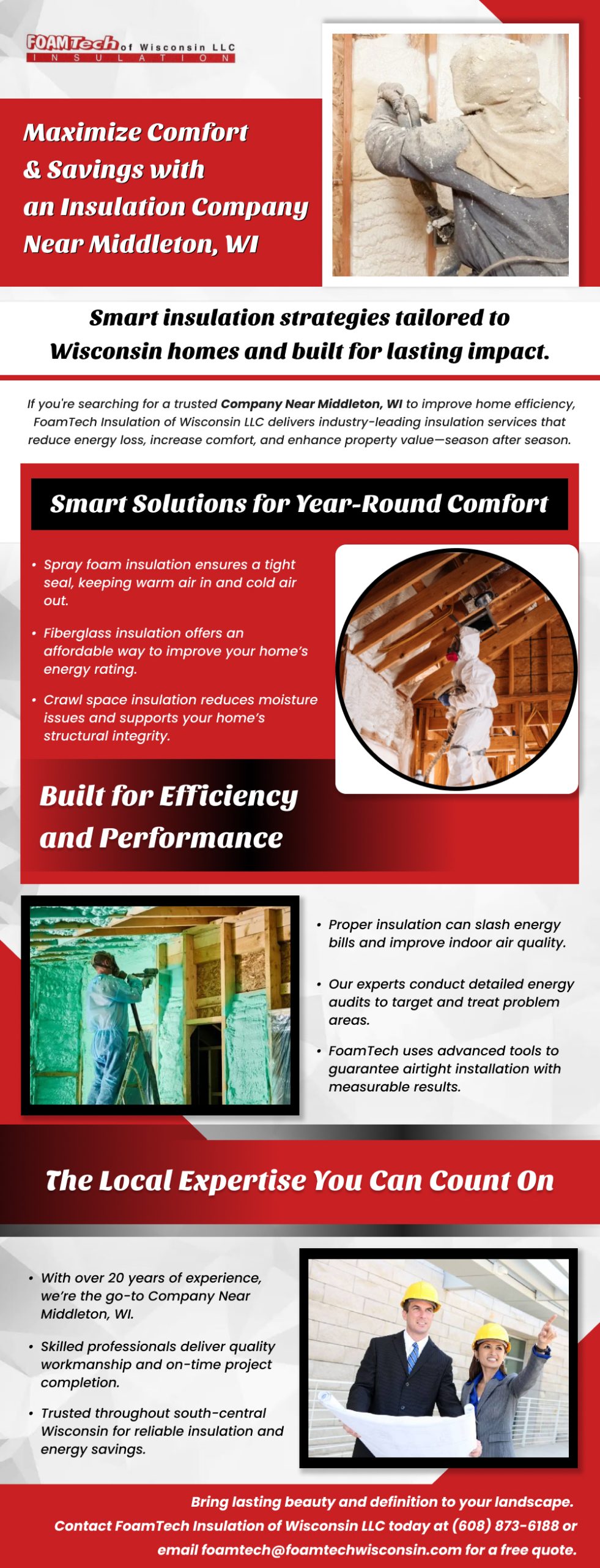 https://foamtechwisconsin.com/spray-foam-insulation-contractor-middleton-wi/ FoamTech Insulation of Wisconsin LLC offers expert insulation solutions near Middleton, WI, to boost comfort, reduce energy bills, and protect your home year-round. From spray foam to crawl space insulation, they deliver efficient, reliable service backed by over 20 years of experience.