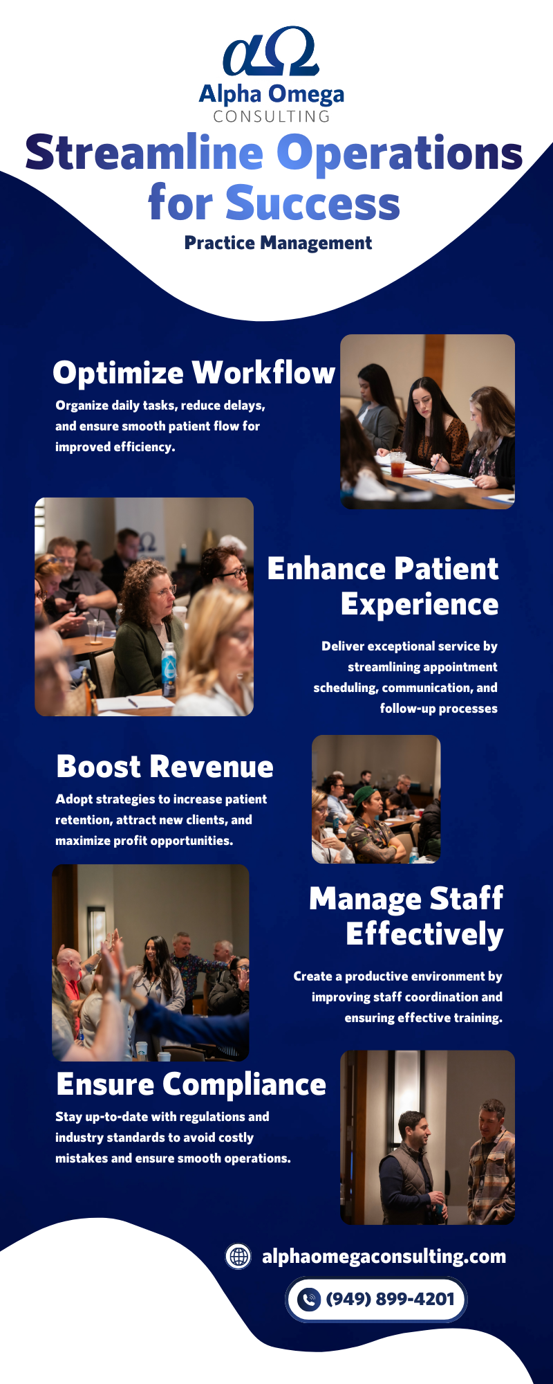 https://www.alphaomegaconsulting.com/ – Effective practice management helps businesses operate efficiently while improving patient satisfaction and profitability. By implementing streamlined workflows, organized scheduling, and clear communication, practices can reduce delays and enhance overall performance. Strong management also focuses on staff coordination, ongoing training, and maintaining compliance with industry regulations. With the right strategies, practices can boost revenue, retain more patients, and create a positive experience for both staff and clients, leading to long-term growth and operational success.