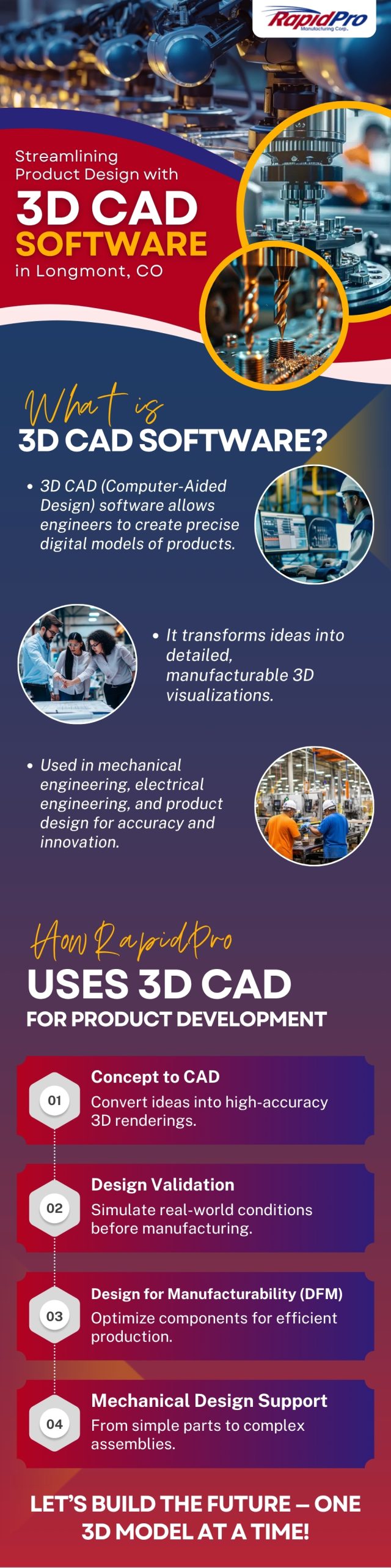 https://rapidpro.com/services/engineering/ – Learn how RapidPro uses this technology to streamline every stage of product development — from concept creation and design validation to manufacturability optimization and mechanical design support. See how advanced CAD tools enable accurate simulations, reduce errors, and bring complex designs to life. Let’s build the future — one 3D model at a time!