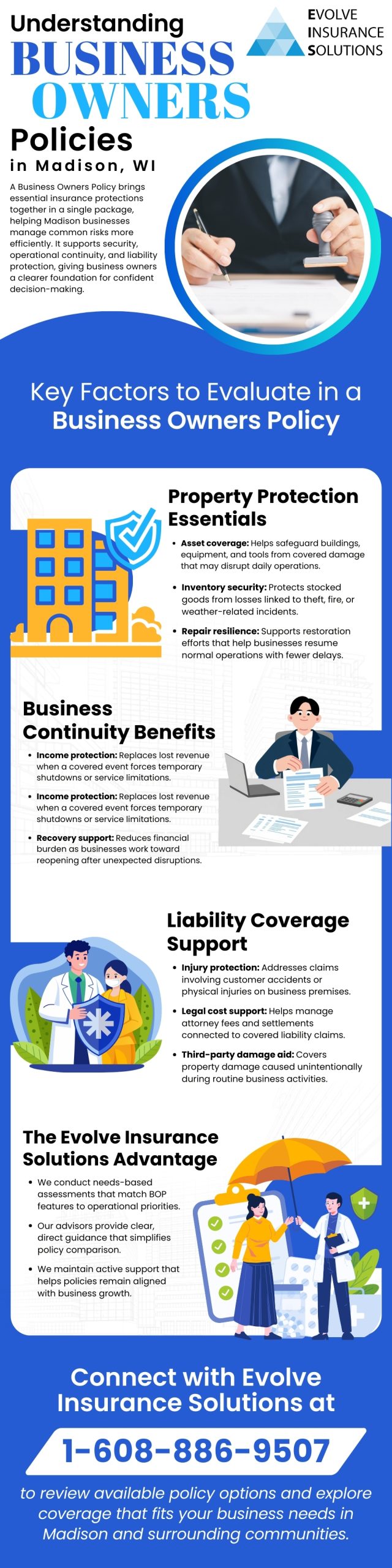 https://eiswi.com/insurance-company-madison-wi/ A Business Owners Policy helps Madison, WI, businesses combine essential insurance protections into one efficient solution. This infographic highlights key coverage areas including property protection, business continuity, and liability support. Learn how asset coverage, income protection, and legal expense assistance work together to reduce financial risk and support long-term business stability. Discover how tailored policy guidance can help align coverage with your operational needs.