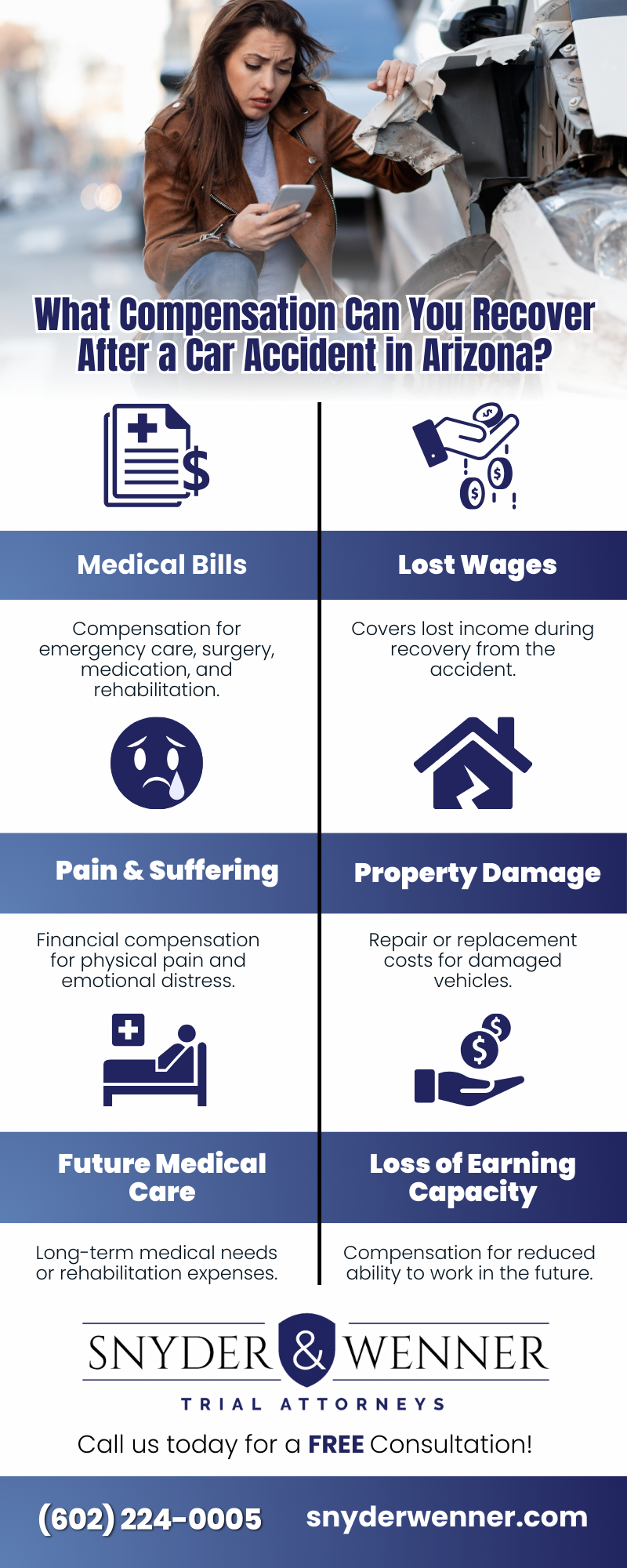 https://snyderwenner.com/personal-injury-arizona/car-accident-attorney-phoenix-az/ – If you’ve been in a car accident, knowing what compensation you can recover is crucial. Learn about key areas such as medical bills, lost wages, pain and suffering, property damage, future medical care, and loss of earning capacity. Protect your rights and ensure that you are compensated for the full extent of your losses with expert legal assistance.
