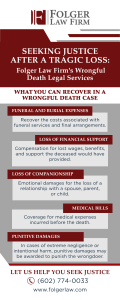 Folger Law Firm provides compassionate and experienced wrongful death representation in Phoenix AZ. We help families pursue compensation for funeral expenses, lost financial support, medical bills, and emotional damages while guiding them through every step of the legal process.